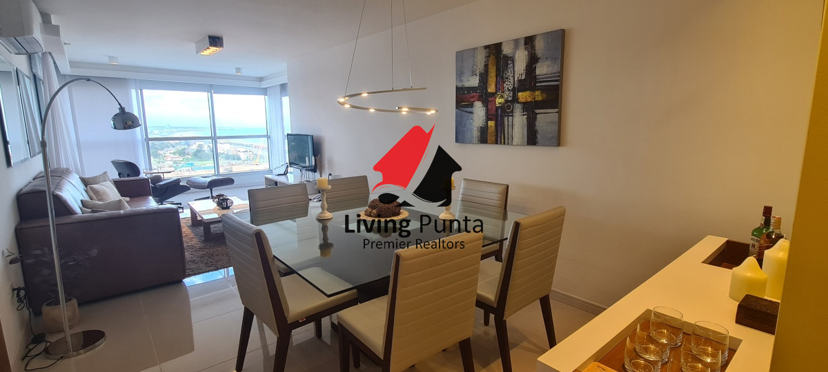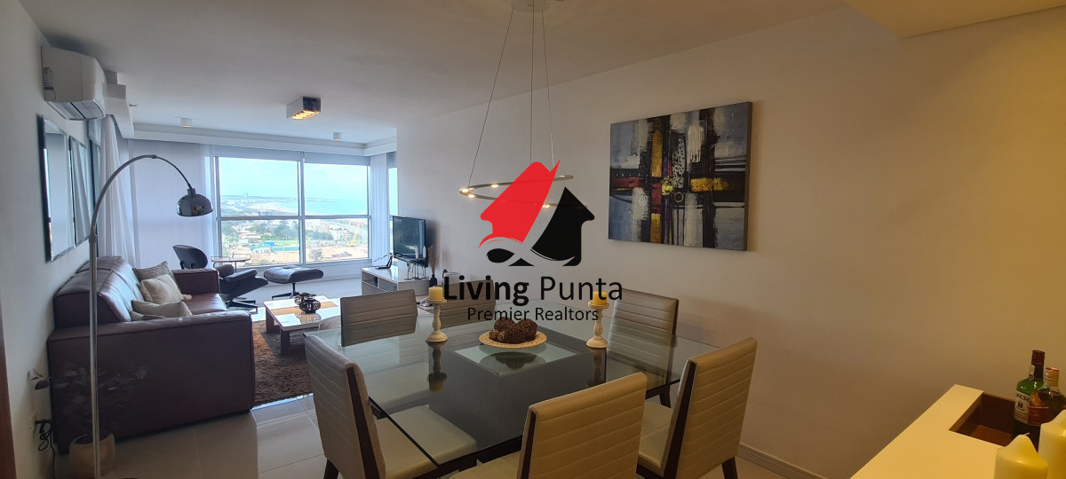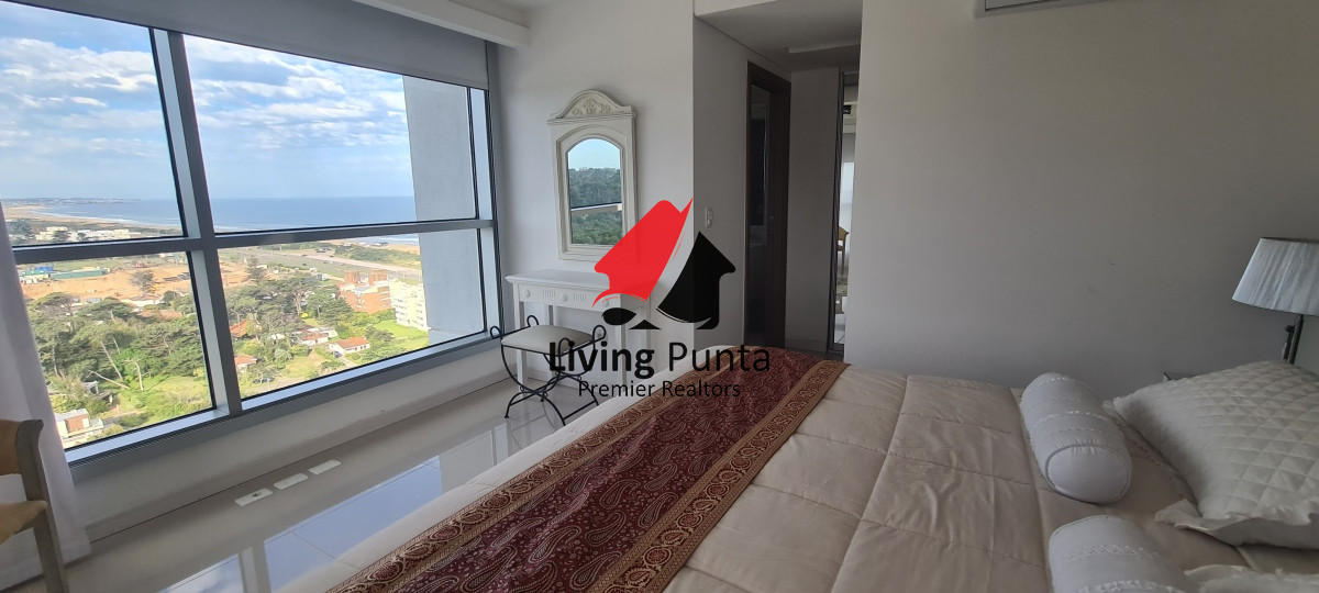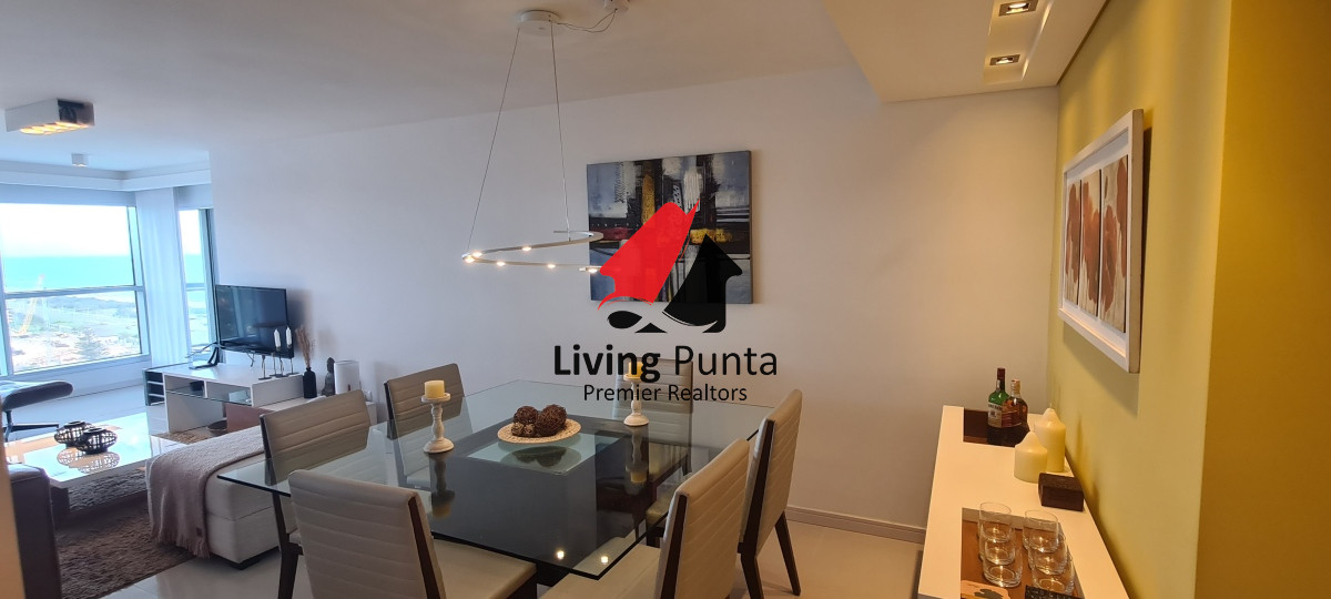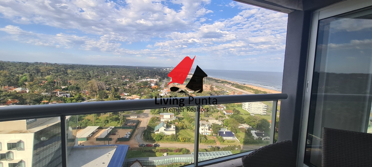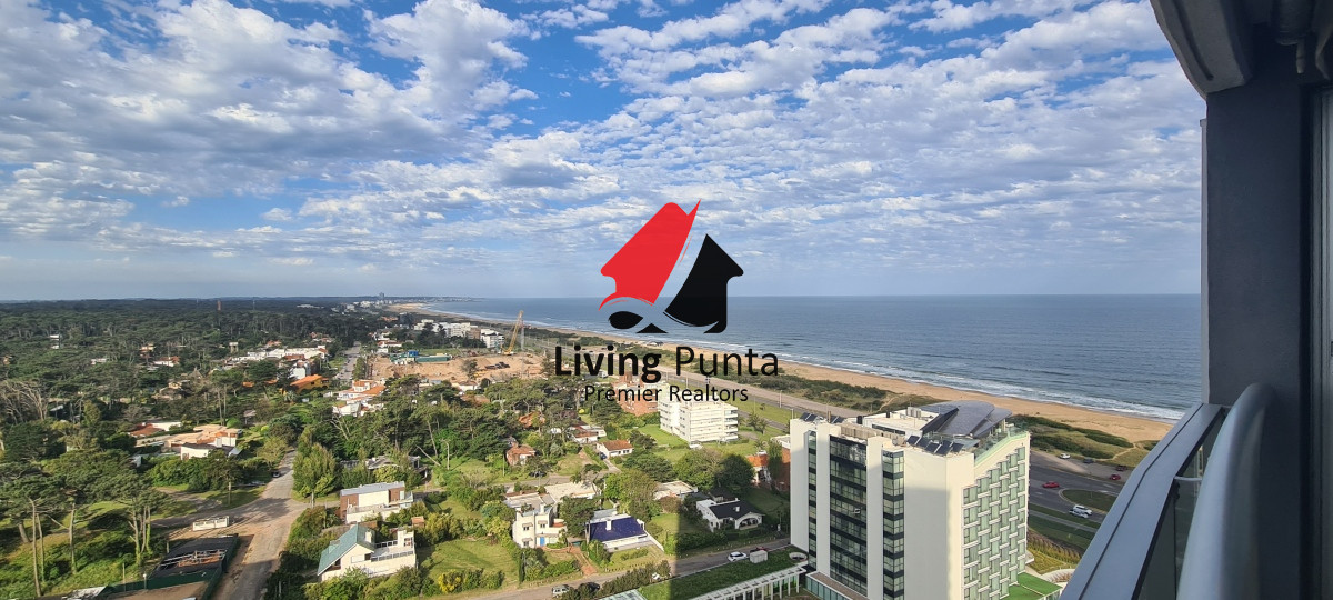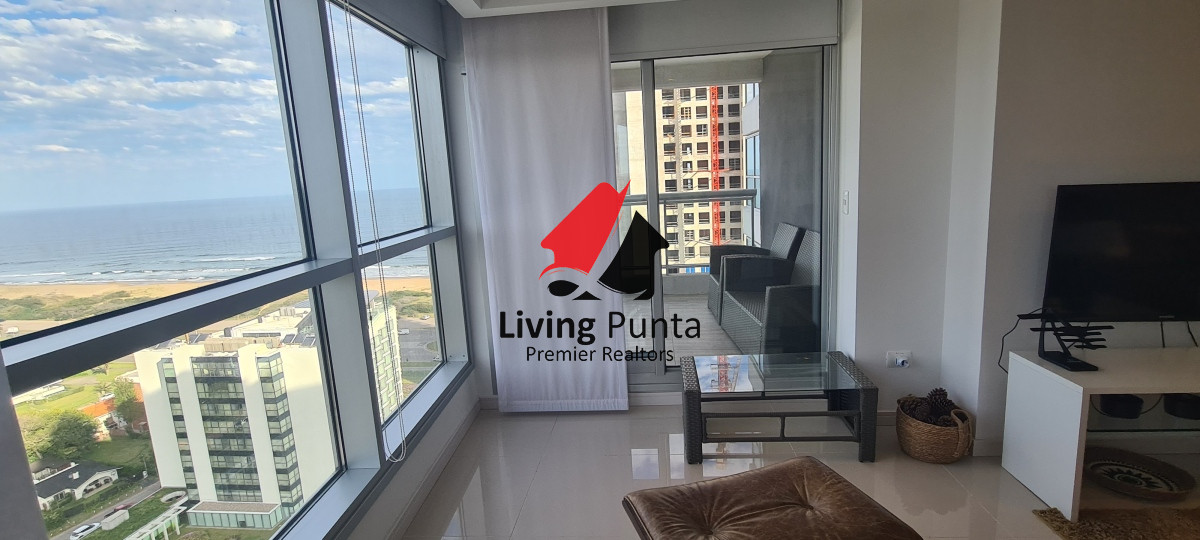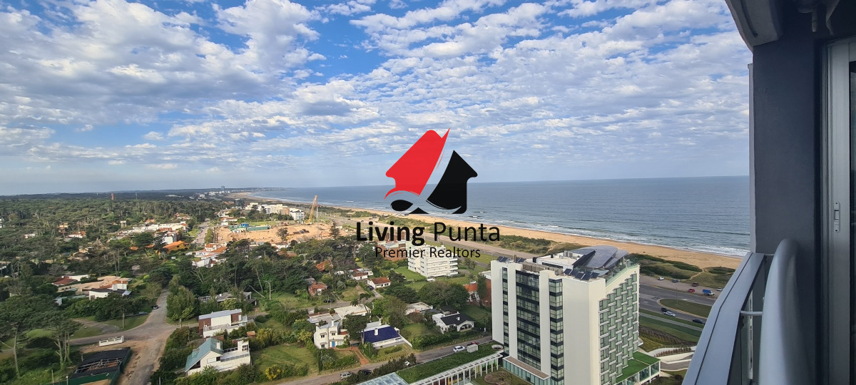 Amplio apartamento en Look Tower, ubicado en la parada 10 de la playa Brava de Punta del Este. Se encuentra en el piso 22, lo que ofrece una vista espectacular de la ciudad y el océano.