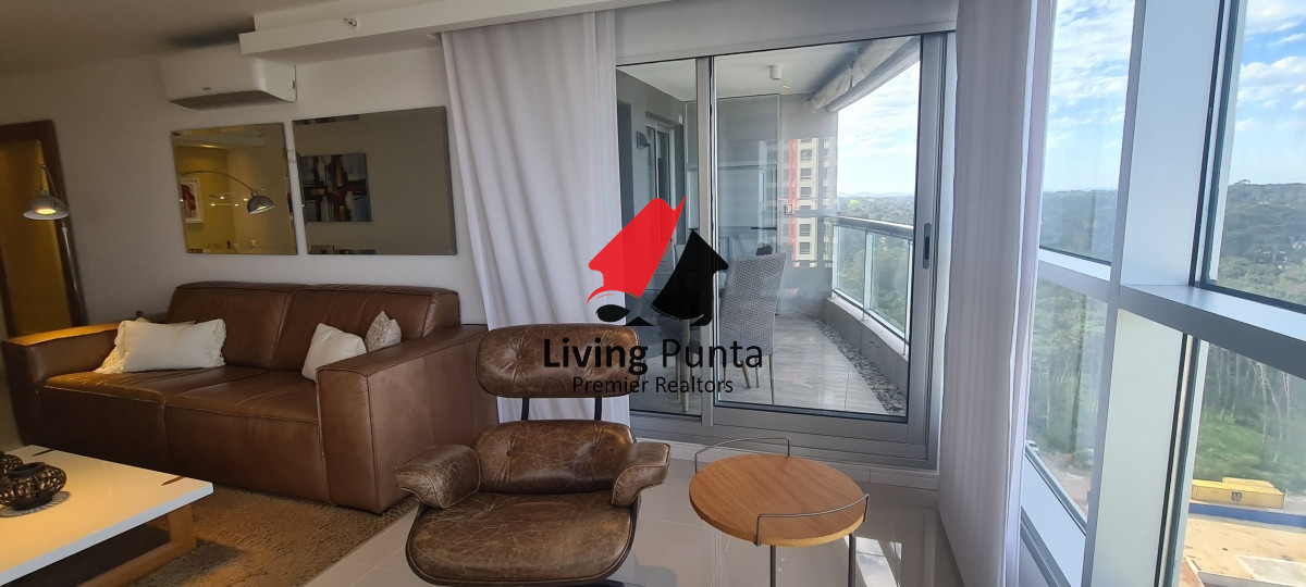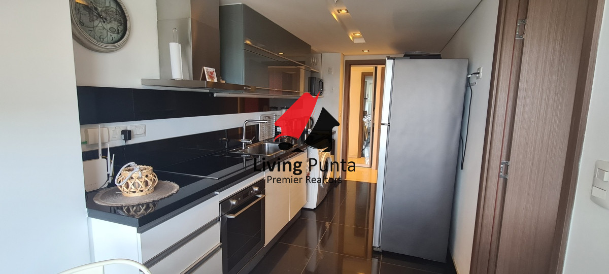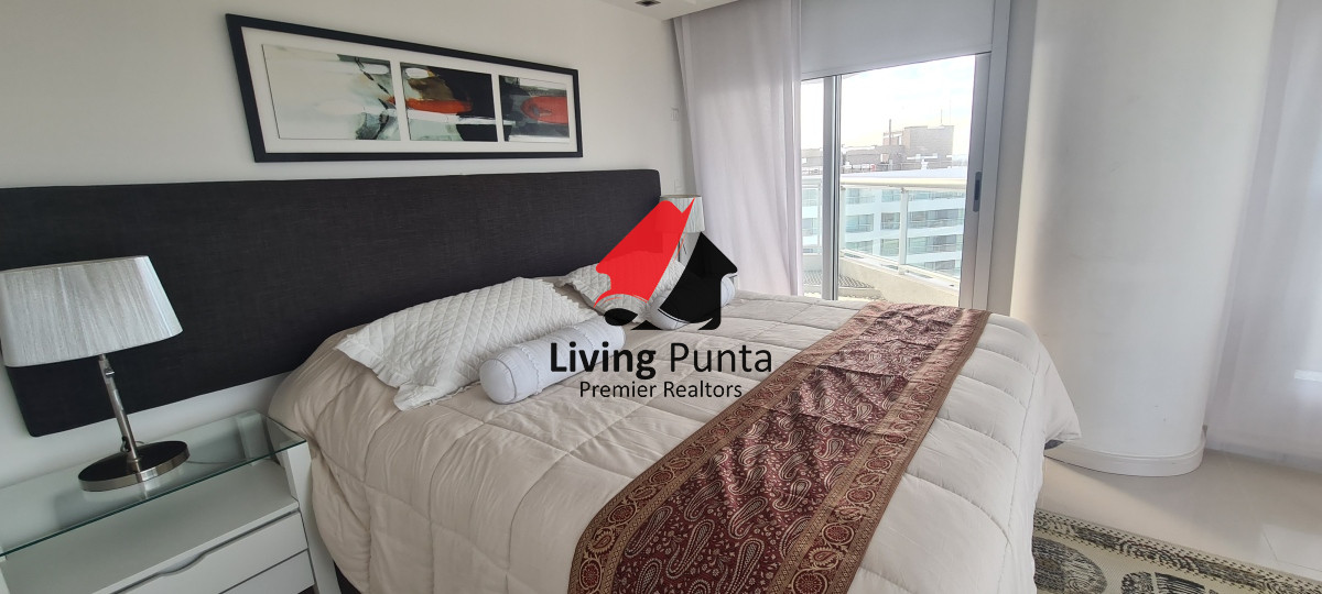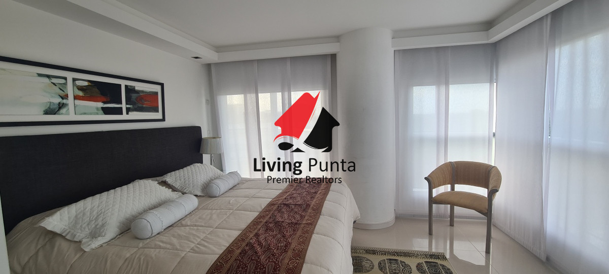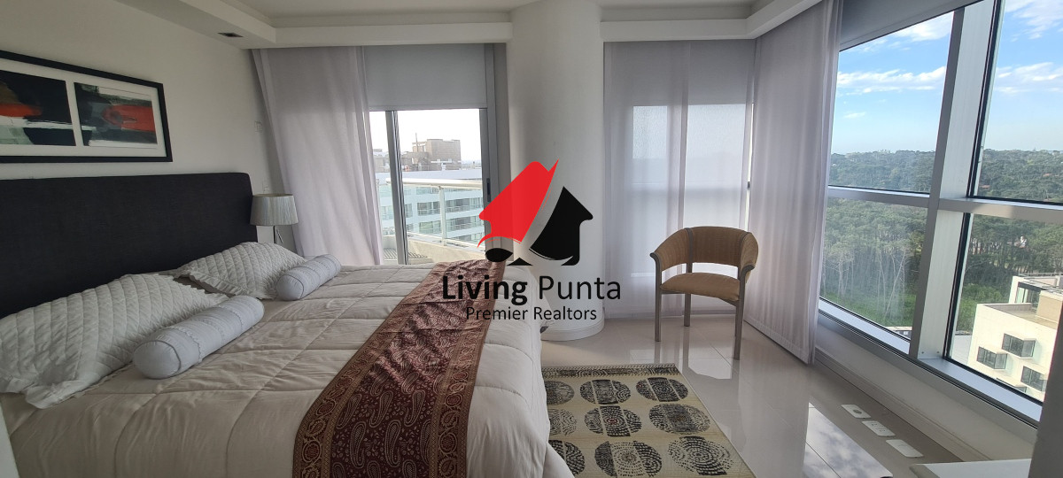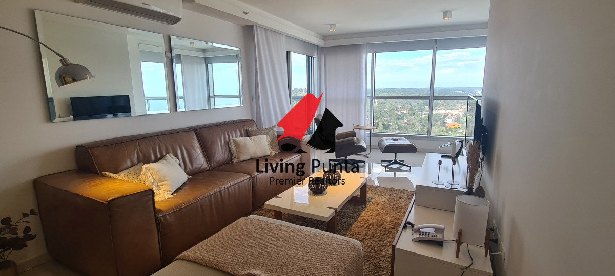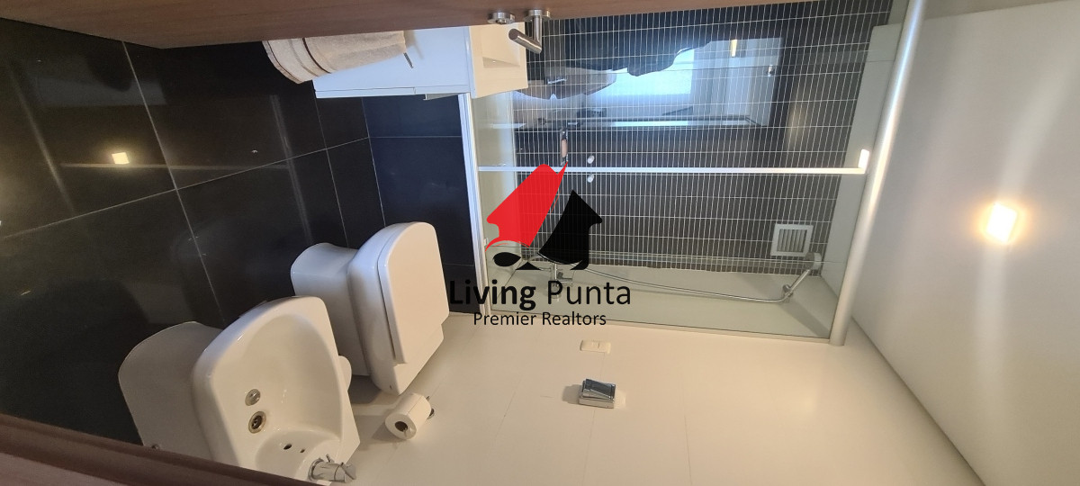 Amplio apartamento en Look Tower, ubicado en la parada 10 de la playa Brava de Punta del Este. Se encuentra en el piso 22, lo que ofrece una vista espectacular de la ciudad y el océano.