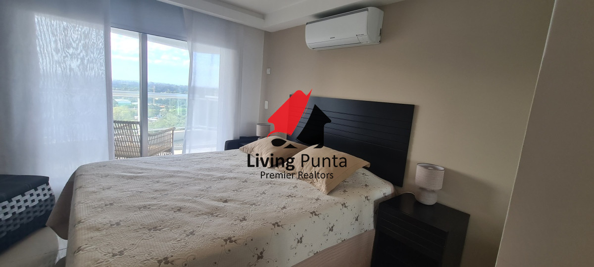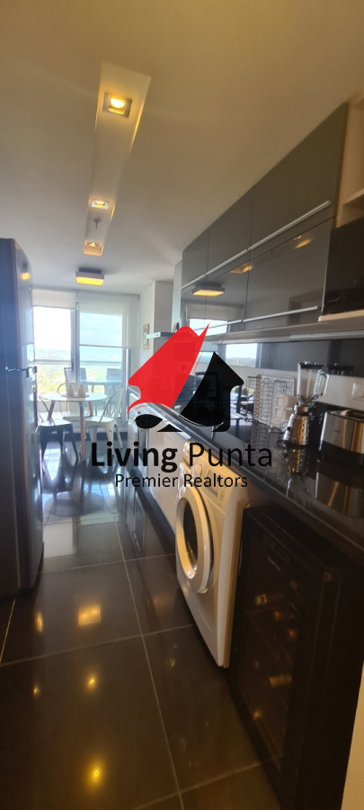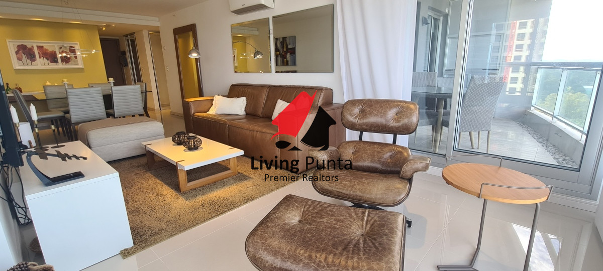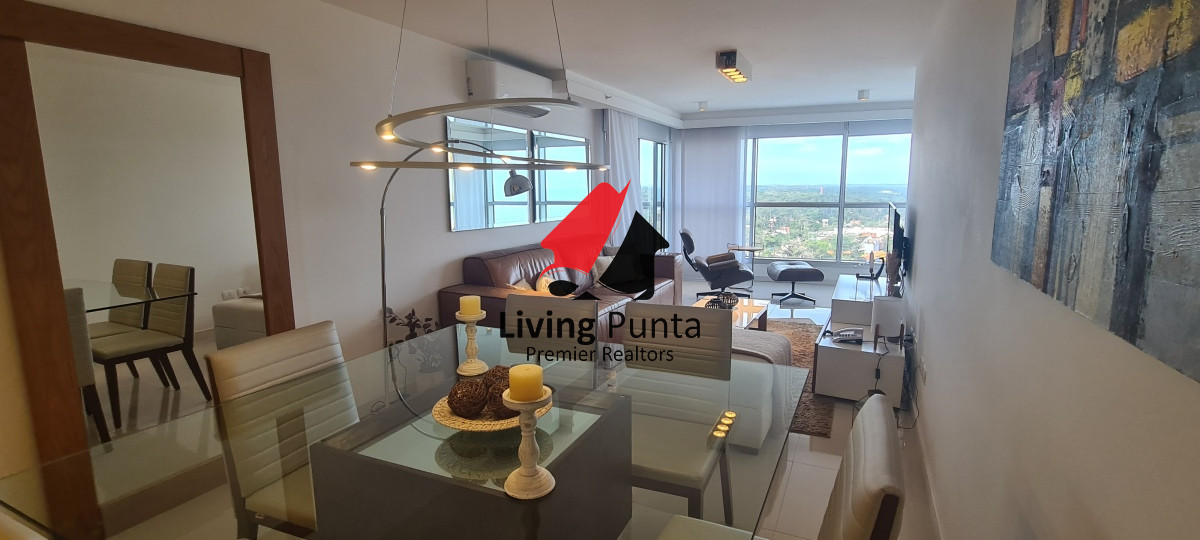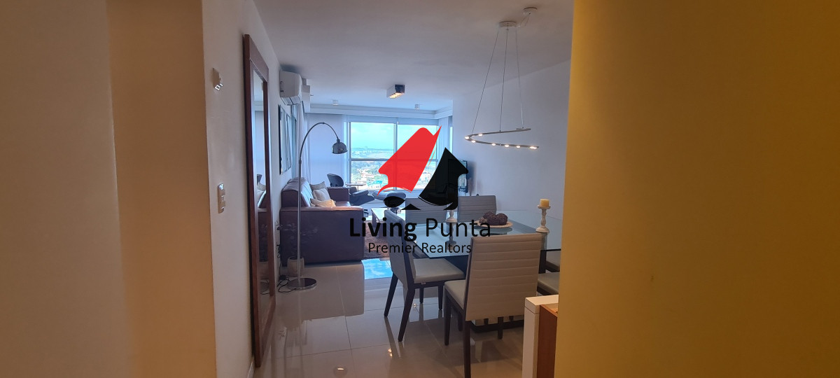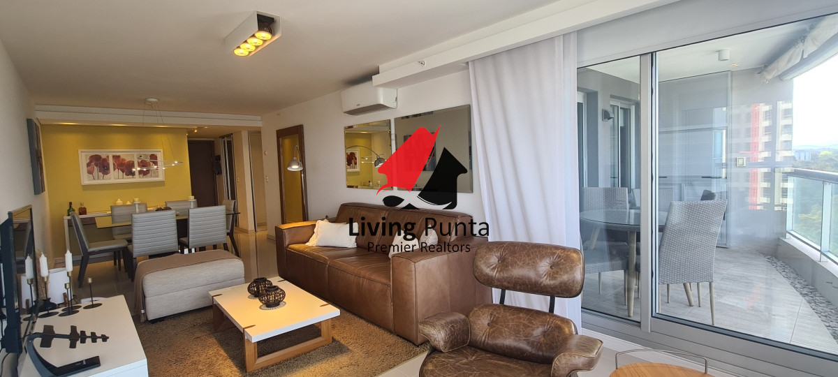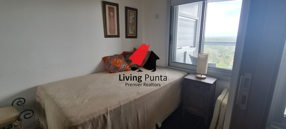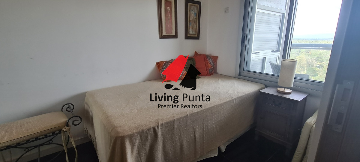 Amplio apartamento en Look Tower, ubicado en la parada 10 de la playa Brava de Punta del Este. Se encuentra en el piso 22, lo que ofrece una vista espectacular de la ciudad y el océano.