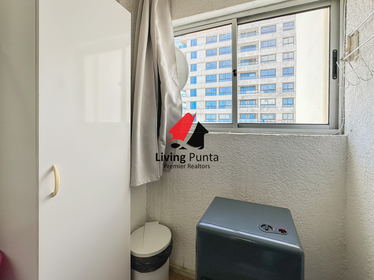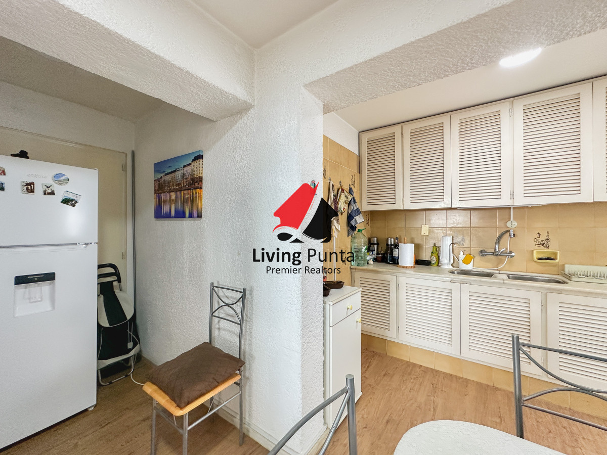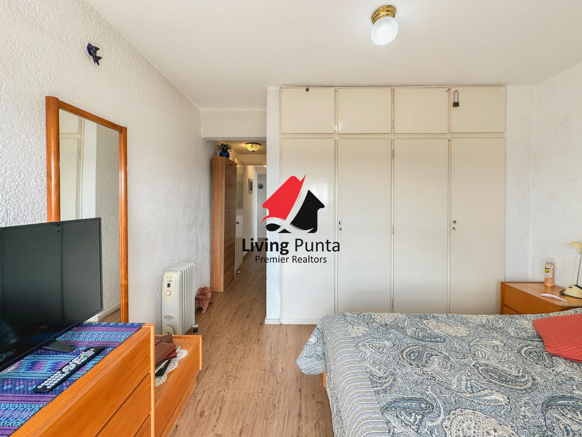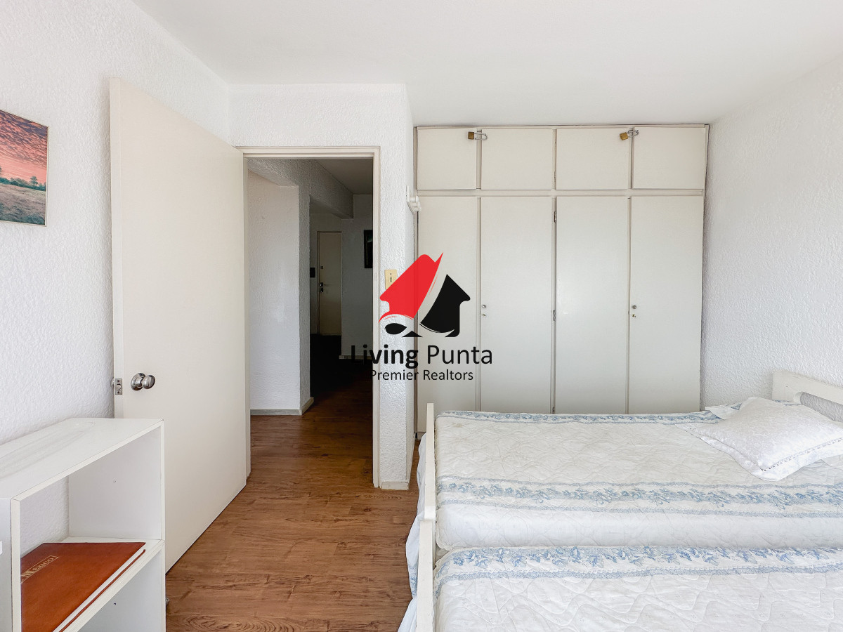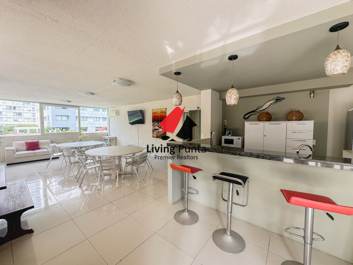 Apartamento en piso alto a pasitos de Sanatorio Cantegril y universidad Claeh. Impactantes vistas a los bosques y lateral al mar, excelente orientación solar. Amplio living-comedor con balcón cerrado, cocina definida con lavadero y acceso de servicio. 2 dormitorios (principal en suite), 2 baños completos. Garage en subsuelo. Edificio con recepción 24hs, SUM, barbacoa, playground y gym.