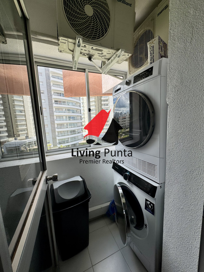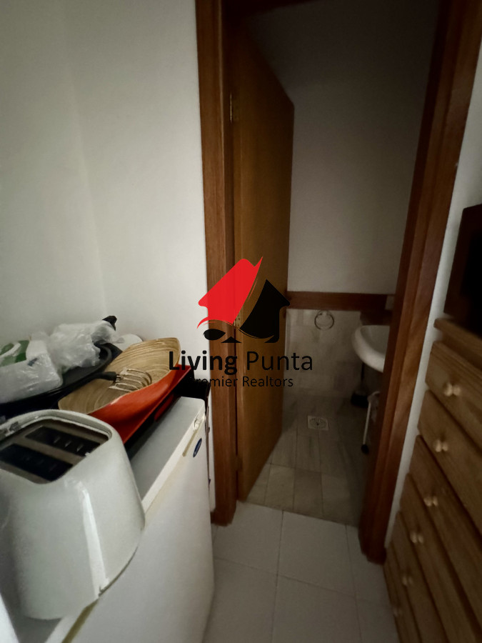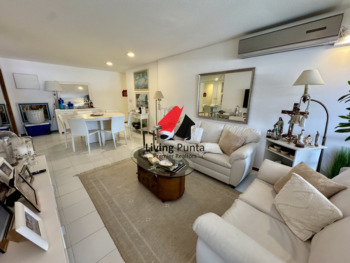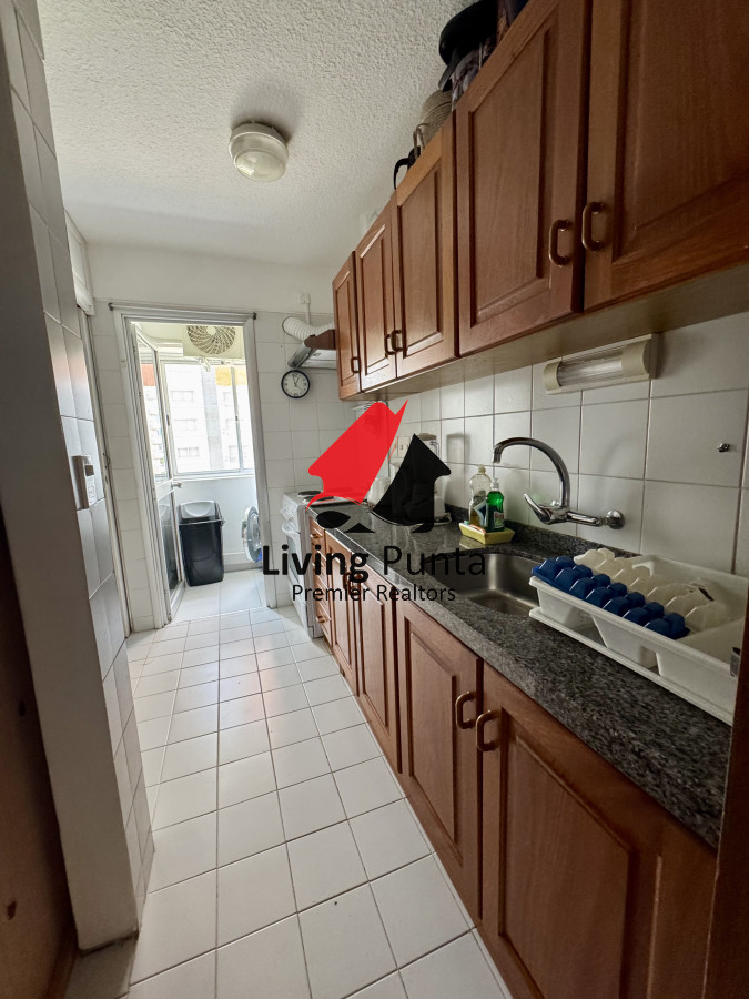 La cocina, completamente equipada, se integra perfectamente al amplio living-comedor, creando un ambiente ideal para disfrutar de momentos inolvidables. Además, podrás relajarte y refrescarte en la piscina del edificio, un verdadero oasis en medio de la vibrante vida de Punta del Este.
