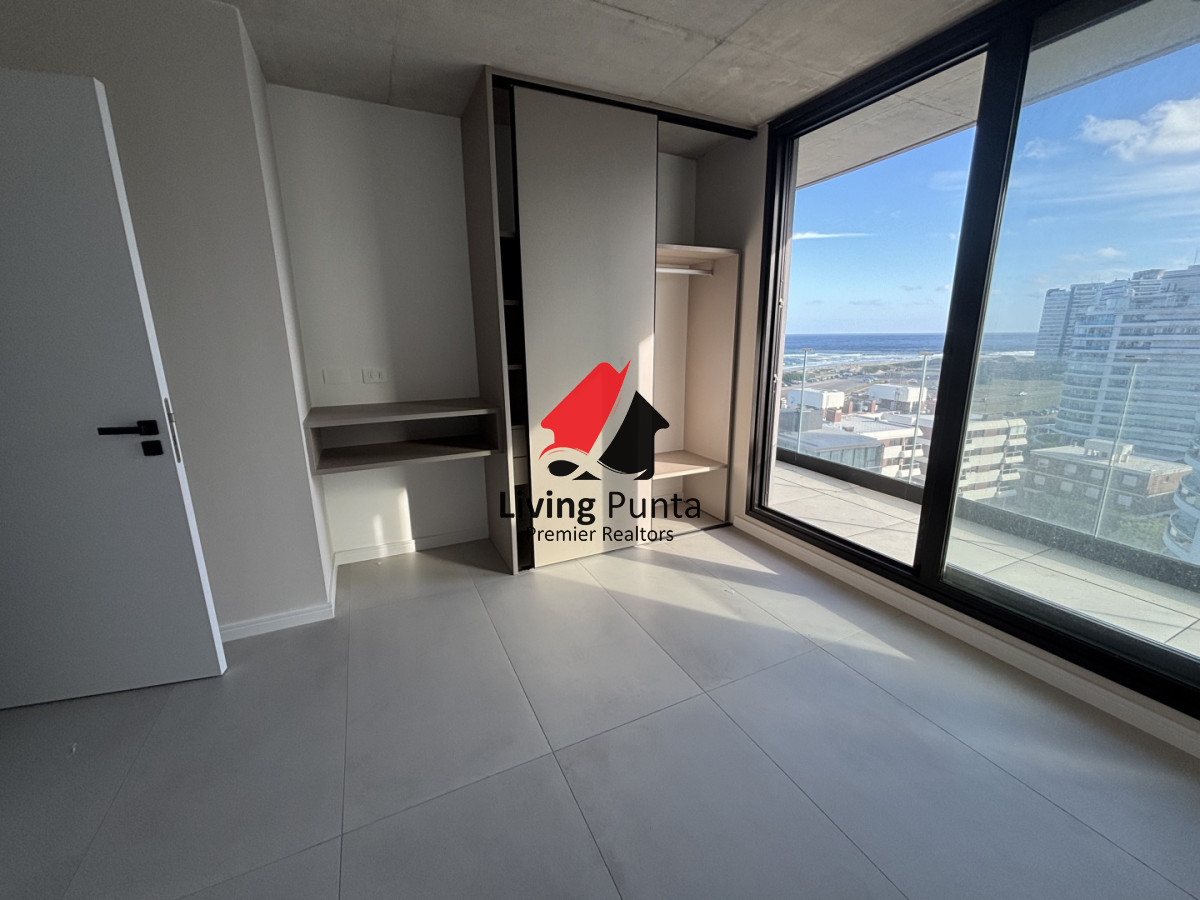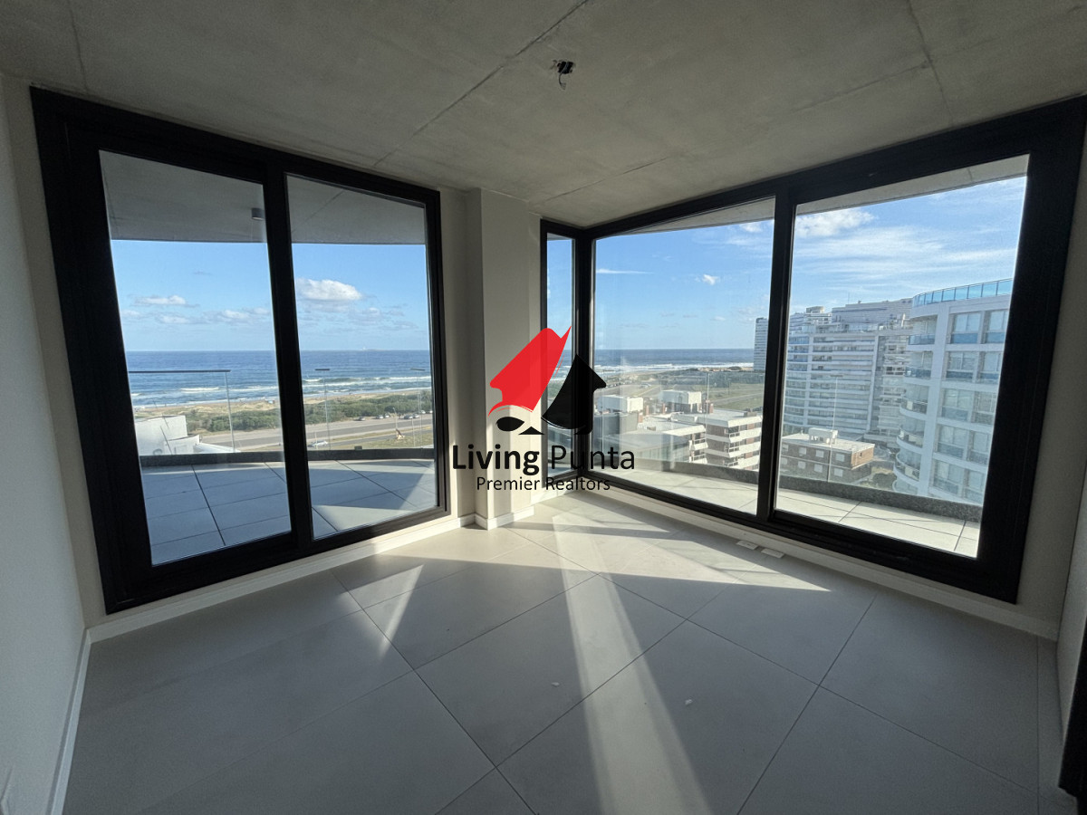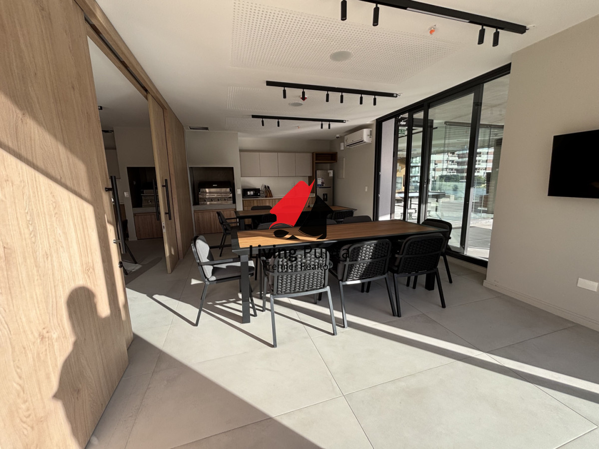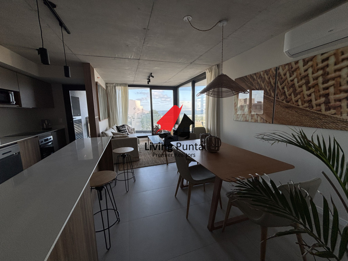 GRAN REVENTA!!!! Living comedor a vistas soñadas. Dos dormitorios y dos baños, el principal en suite, ambos con salida a la terraza. Espacio exterior a continuacion de la cocina con parrillero electrico. Garage doble.