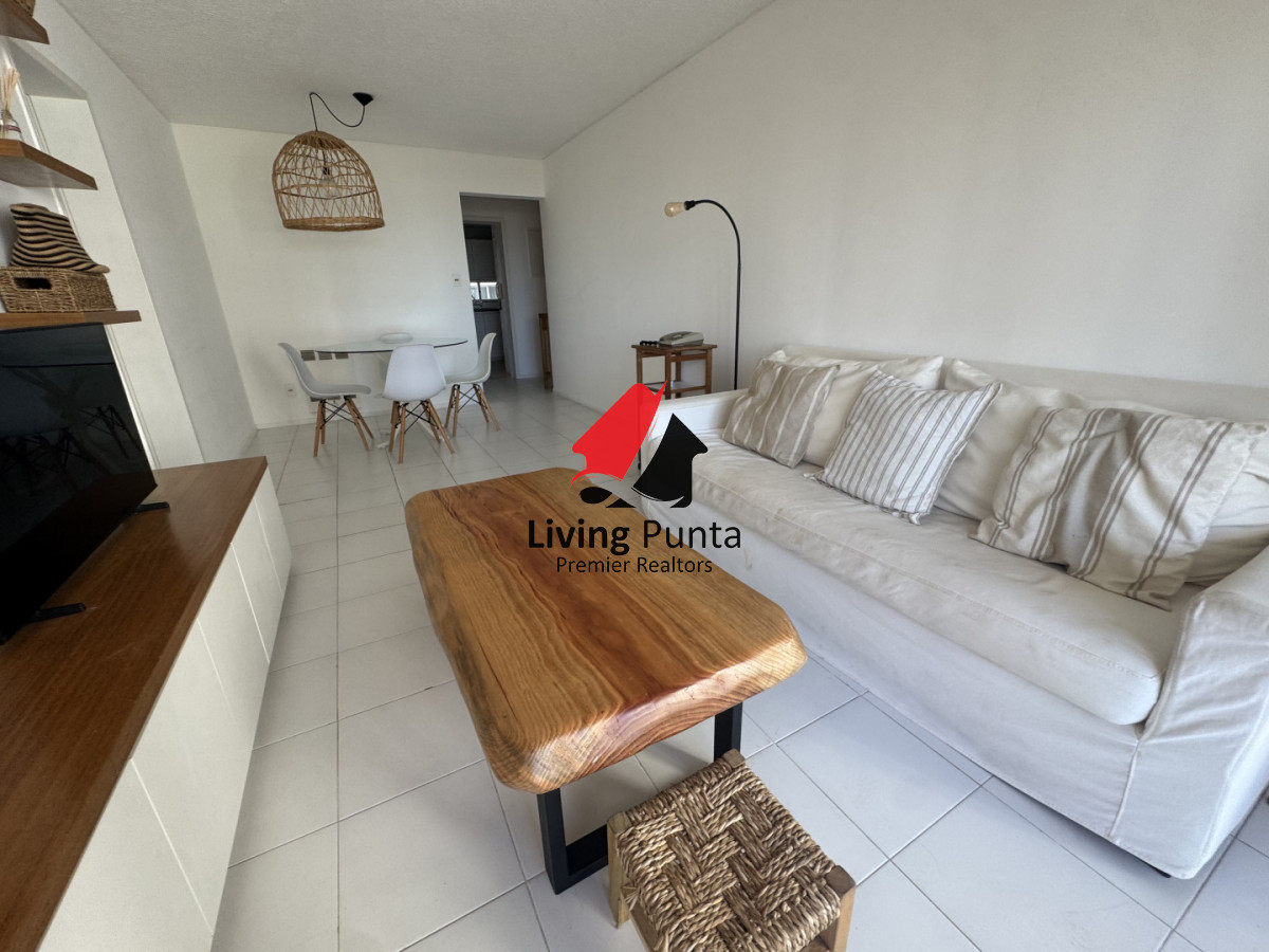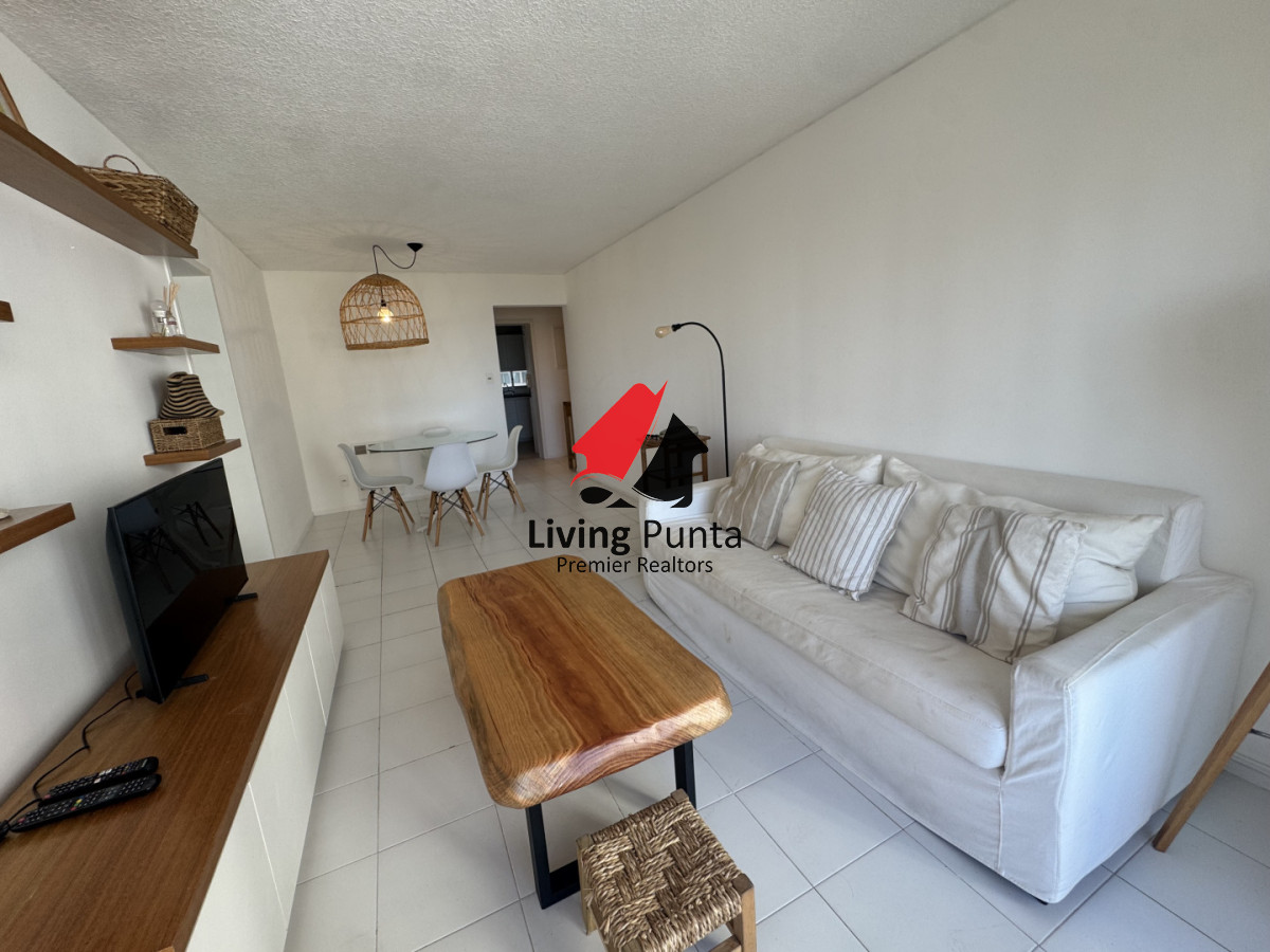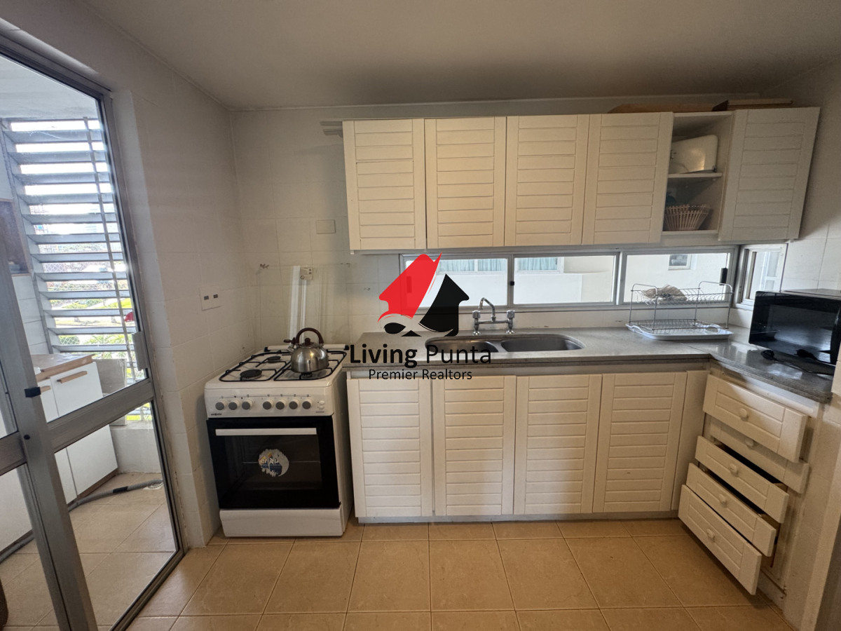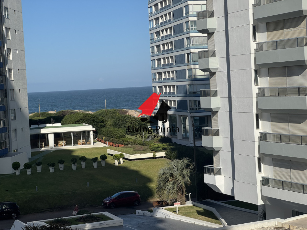 La cocina, completamente equipada, se integra a un amplio living comedor, creando un ambiente perfecto para compartir y relajarse. Además, el edificio ofrece servicios de mucamas y playa, asegurando que cada detalle de tu estancia sea placentero.