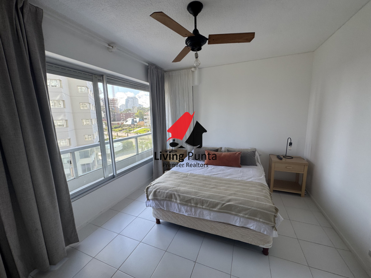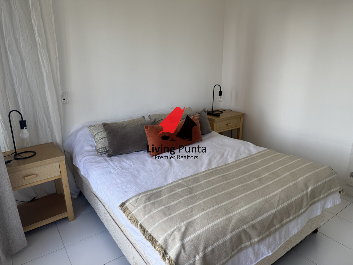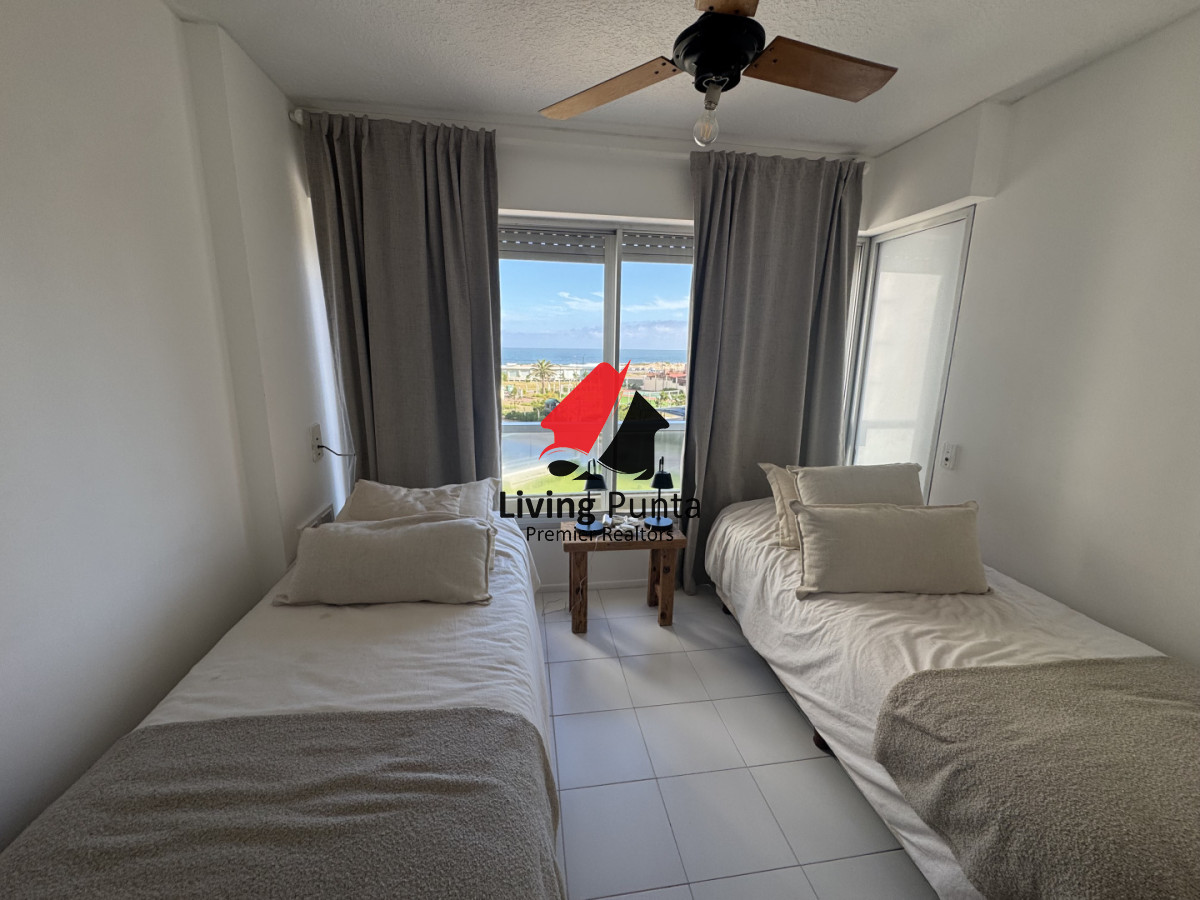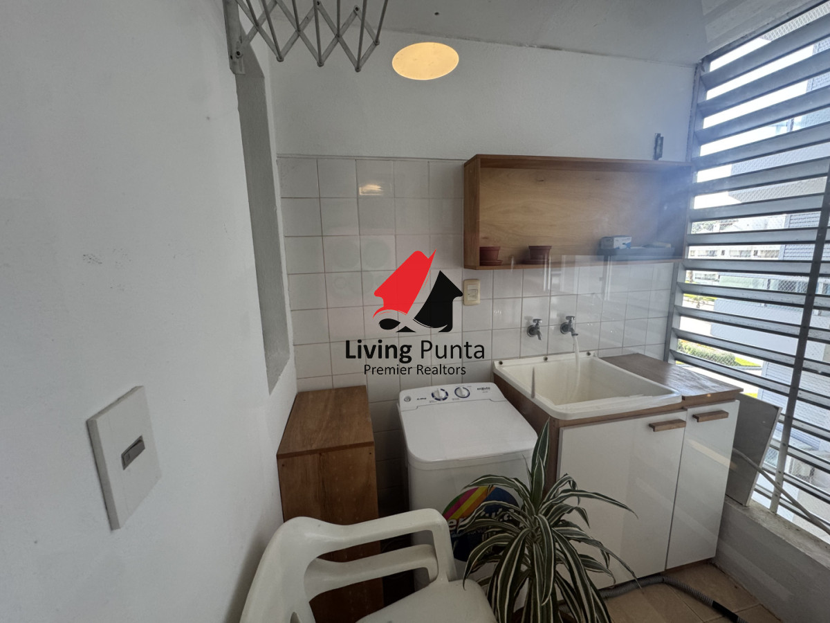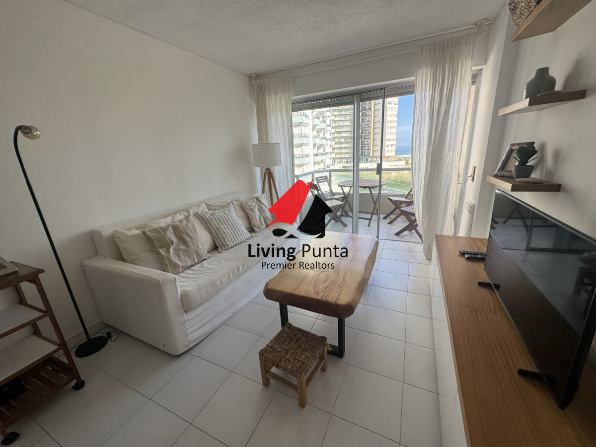 La cocina, completamente equipada, se integra a un amplio living comedor, creando un ambiente perfecto para compartir y relajarse. Además, el edificio ofrece servicios de mucamas y playa, asegurando que cada detalle de tu estancia sea placentero.