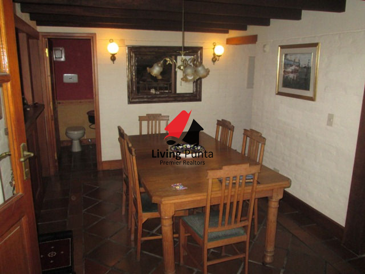 Casa principal cuenta con importante living con estufa a leña, comedor, cocina (con campaña hecha artesanalmente en hierro fundido), toilette, 2 dormitorios, 2 baños (1 en suite) y amplio play room. Calefacción por loza radiante sectorizada y aire acondicionado