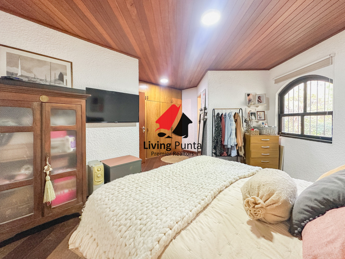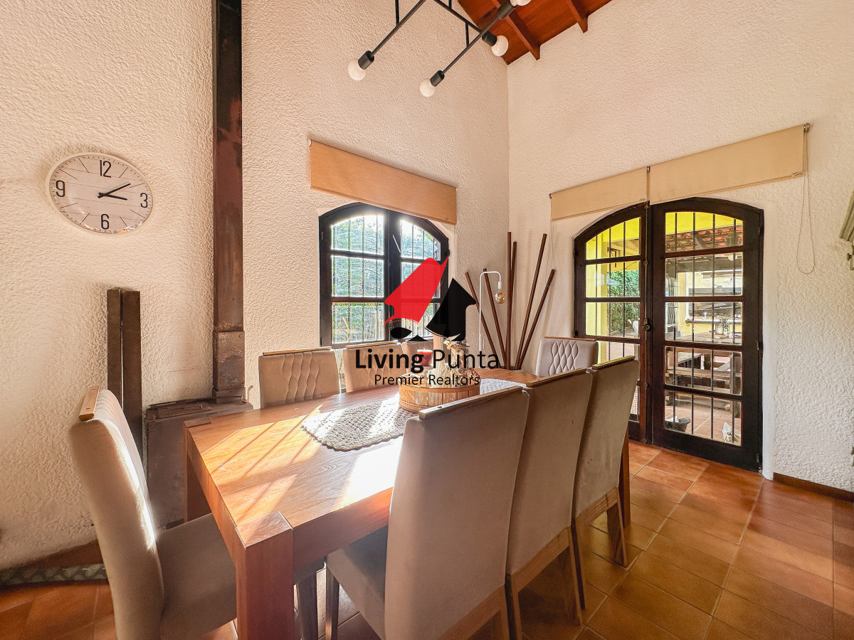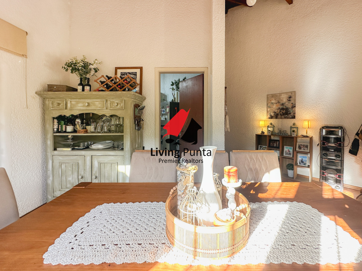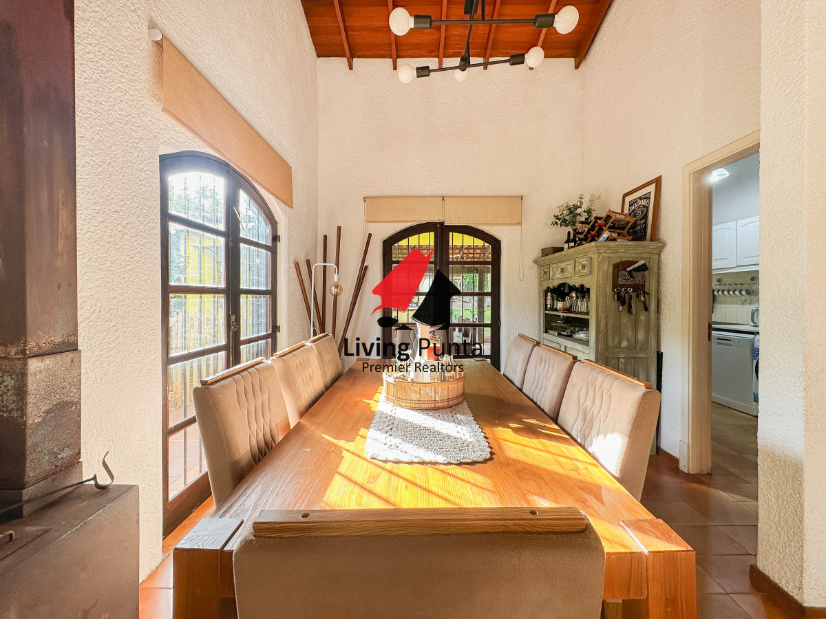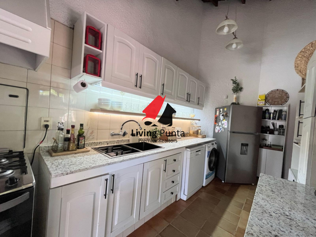 Casa súper acogedora en Pinares a 500 metros del mar. Amplio living-comedor sectorizado con gran estufa a leña. Excelente construcción tradicional, predomina la madera en pisos y techos, haciendo de esta propiedad un lugar cálido y acogedor. Excelente orientación solar. Cocina definida con salida a parrillero. 3 dormitorios (principal en suite), 2 baños completos. Además al fondo, dependencia de servicio con baño. Gran jardín cercado.