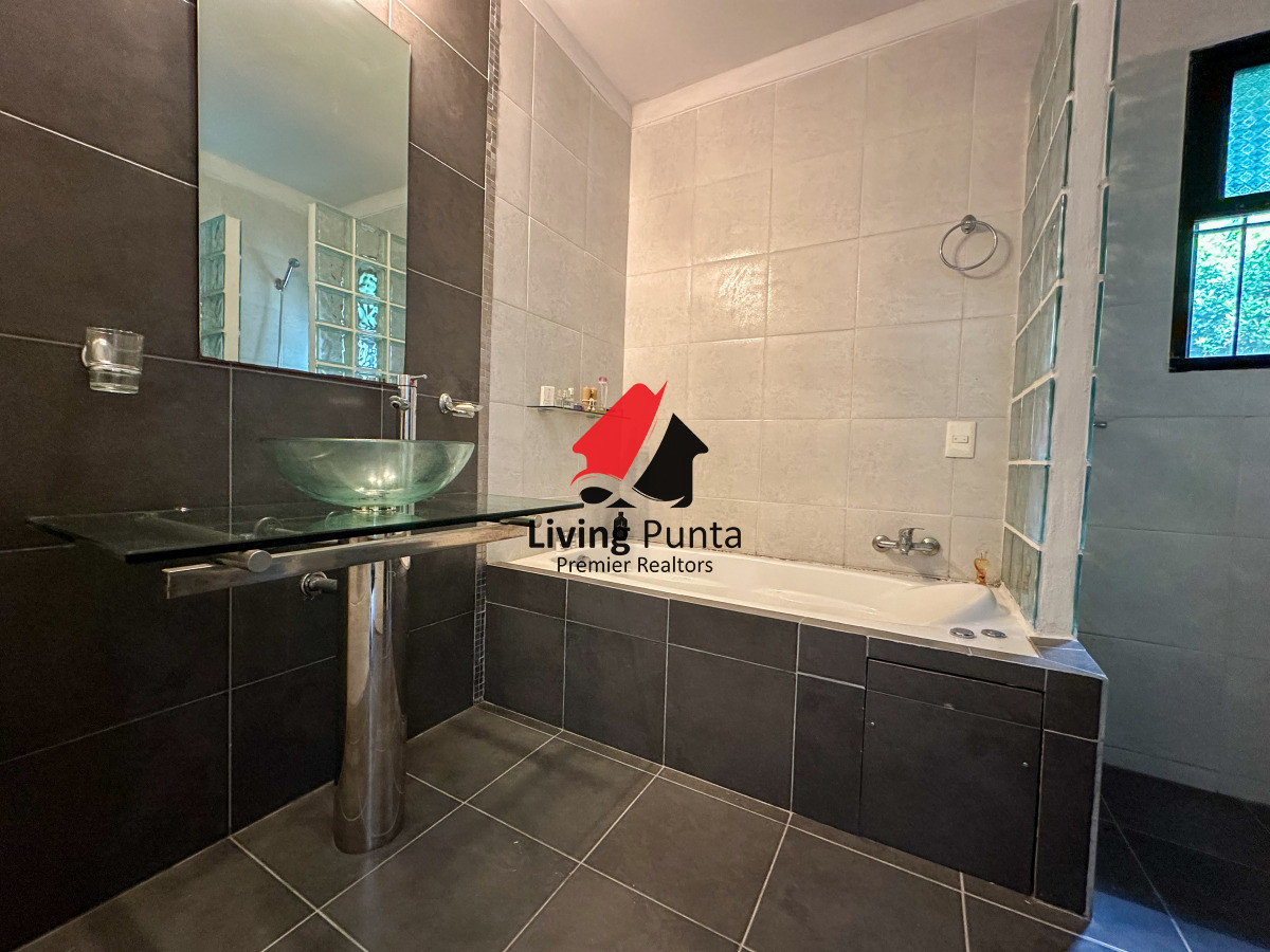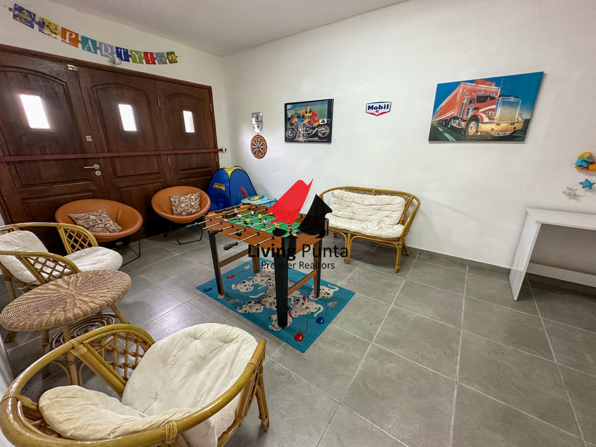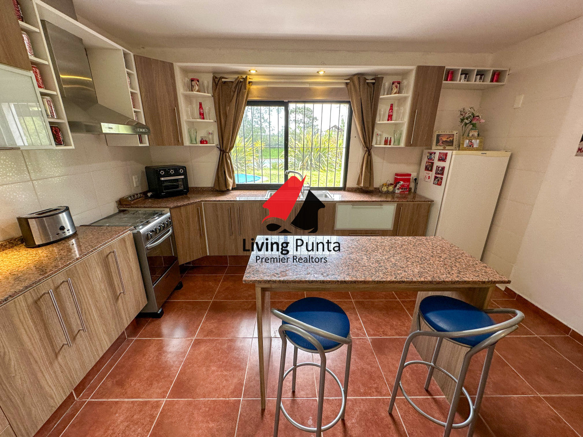 La residencia cuenta con 5 amplios dormitorios y 4 baños (dormitorio principal en suite+ 3 dormitorios secundarios con baño completo, toilette de recepción y habitación de servicio con baño). Gran área social, muy luminosa, amplia cocina con desayunador. Sector de barbacoa integrada, área social y parrillero propio con acceso a la sala de juegos para niños.