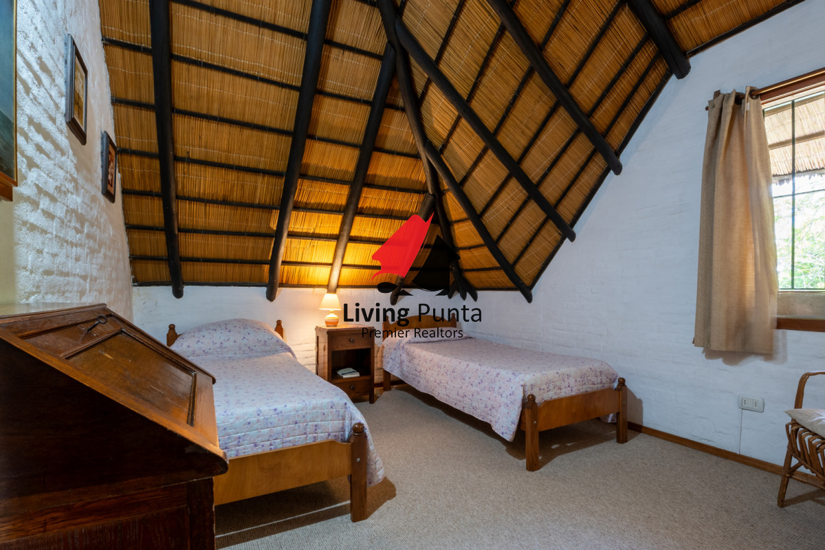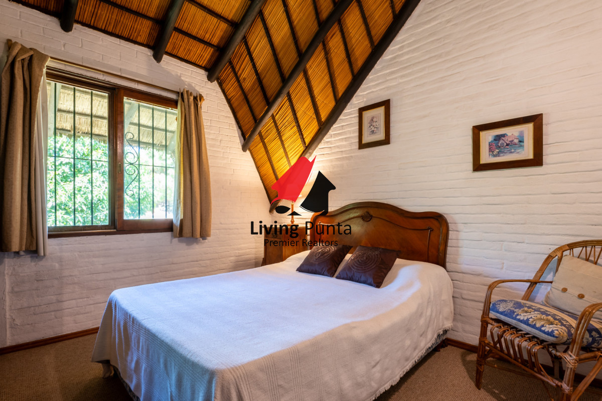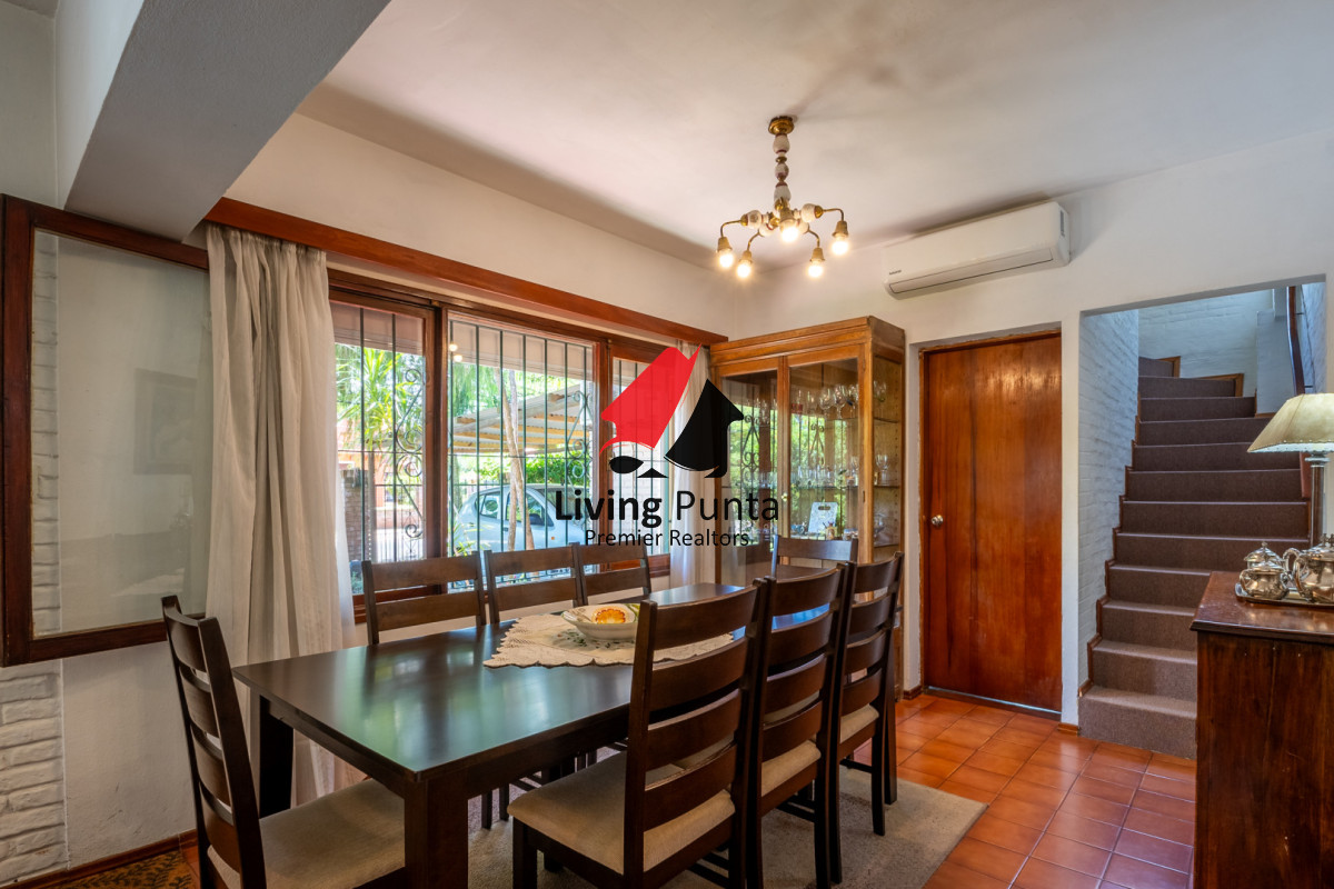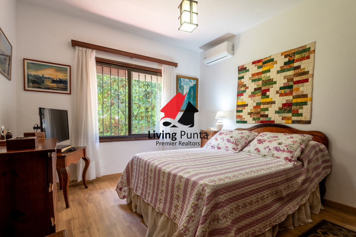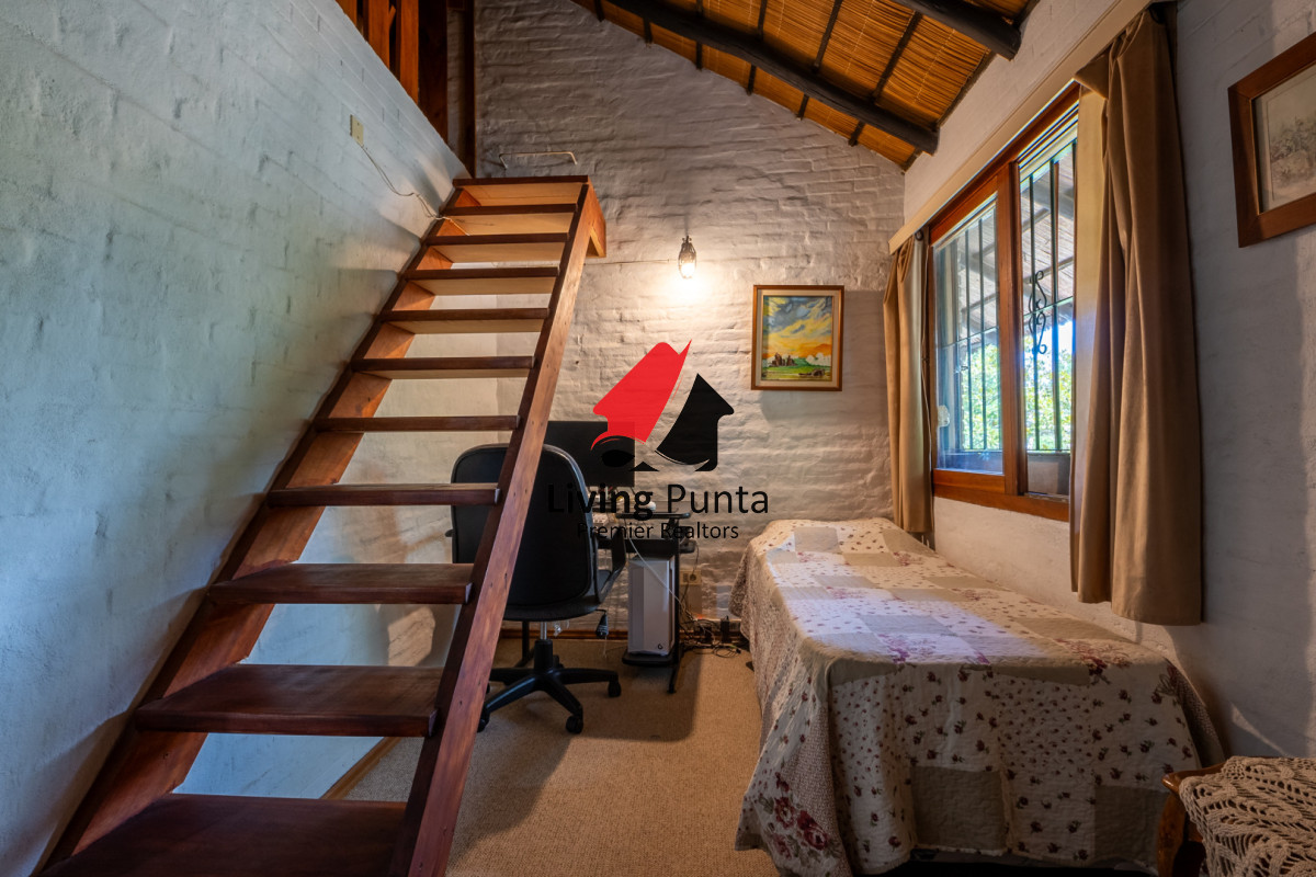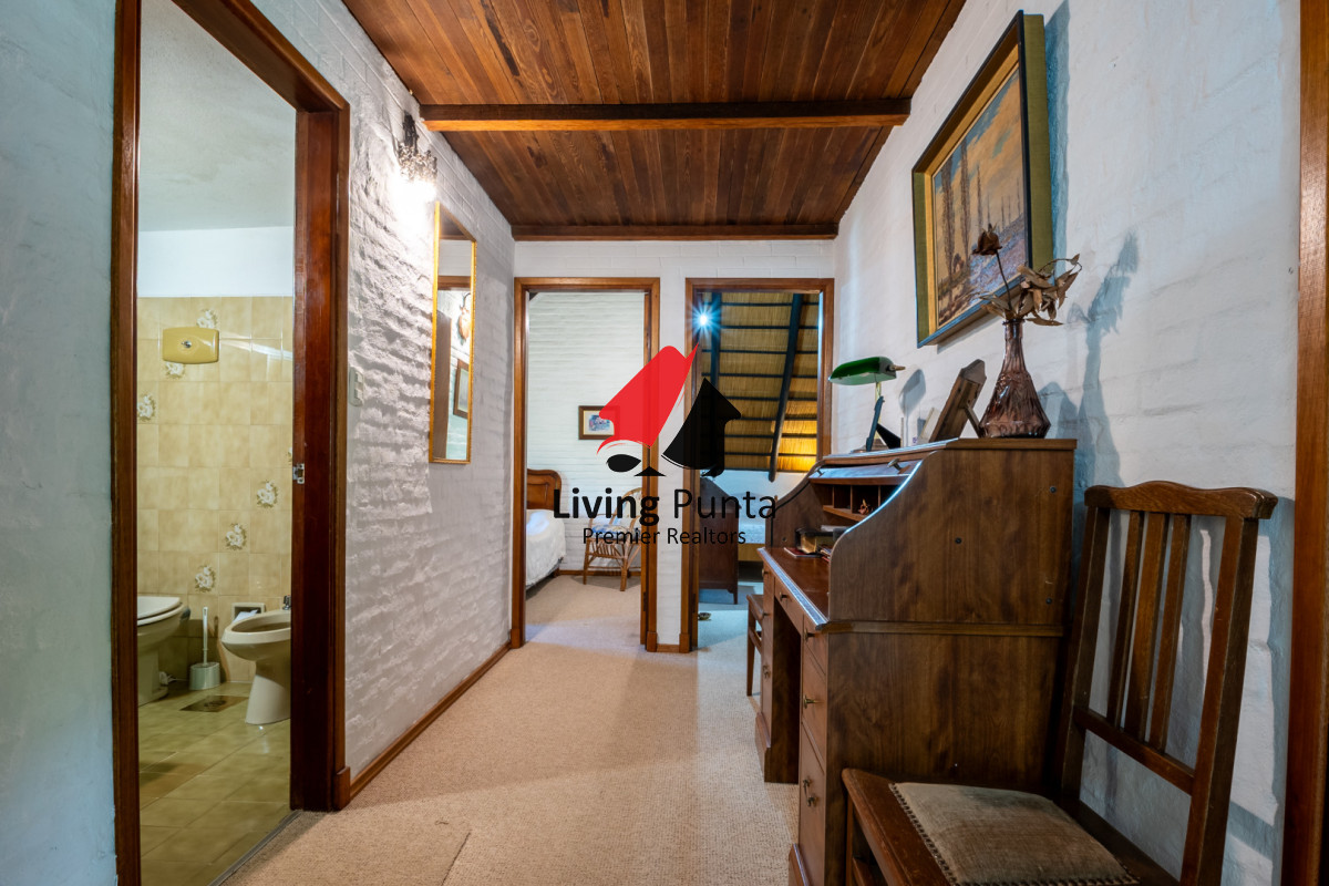La casa cuenta con 5 dormitorios, 2 baños (1 en suite en planta baja), 4 dormitorios y 1 baño en planta alta.