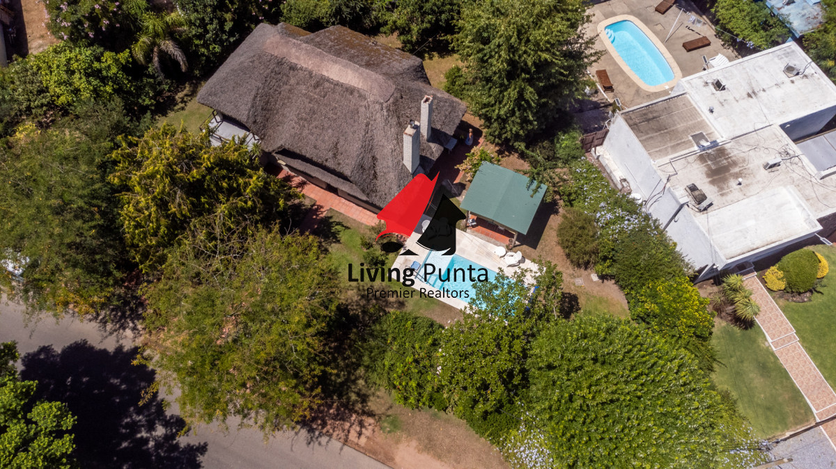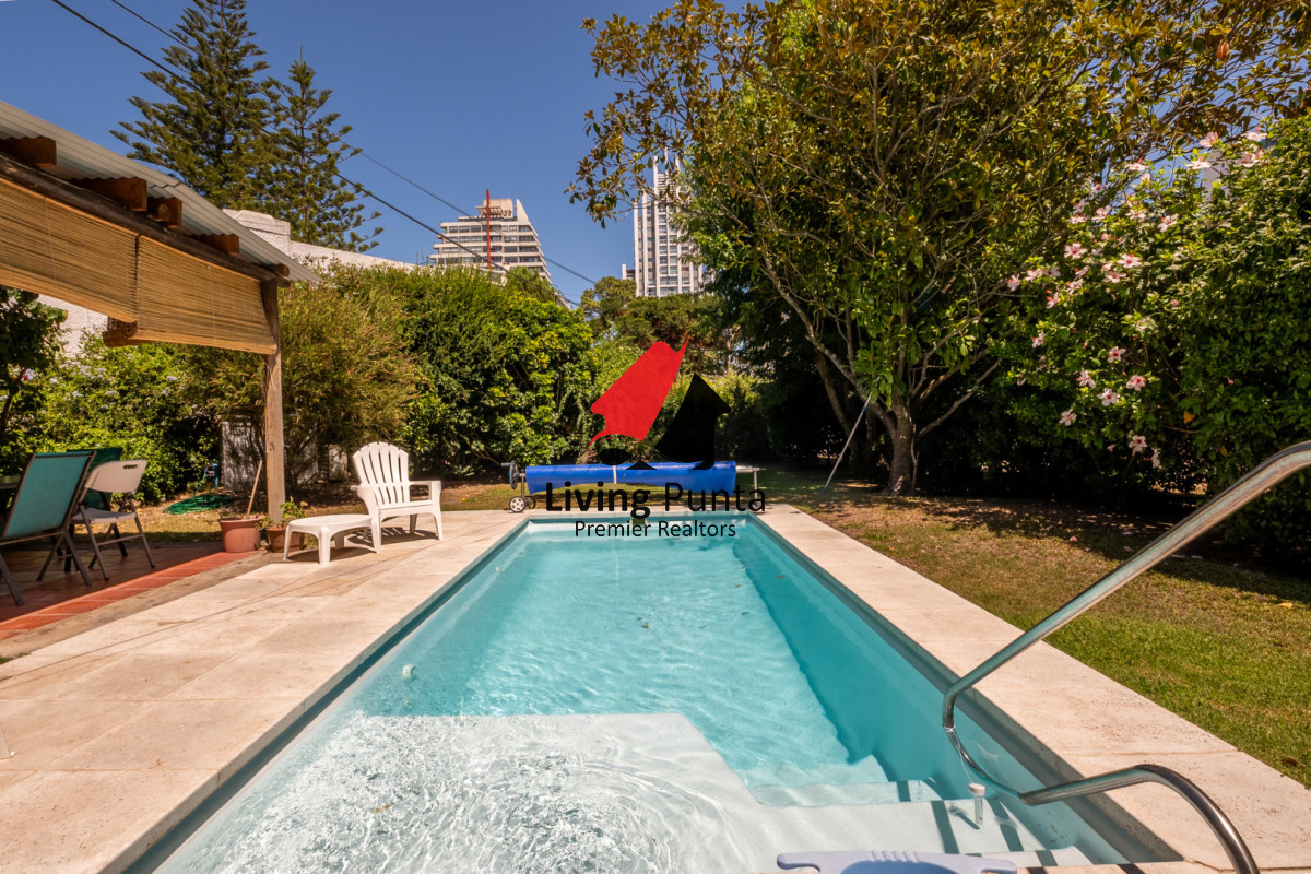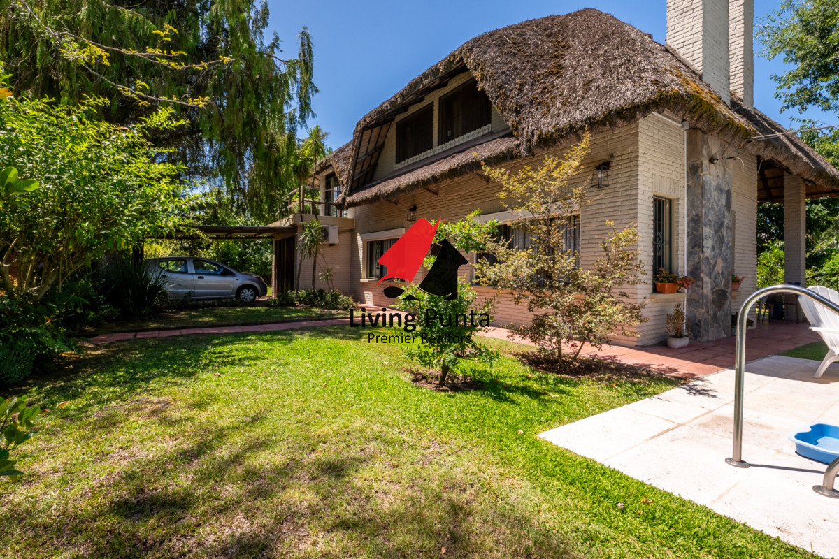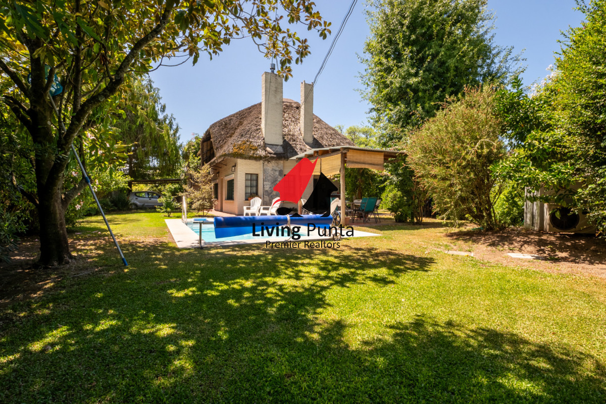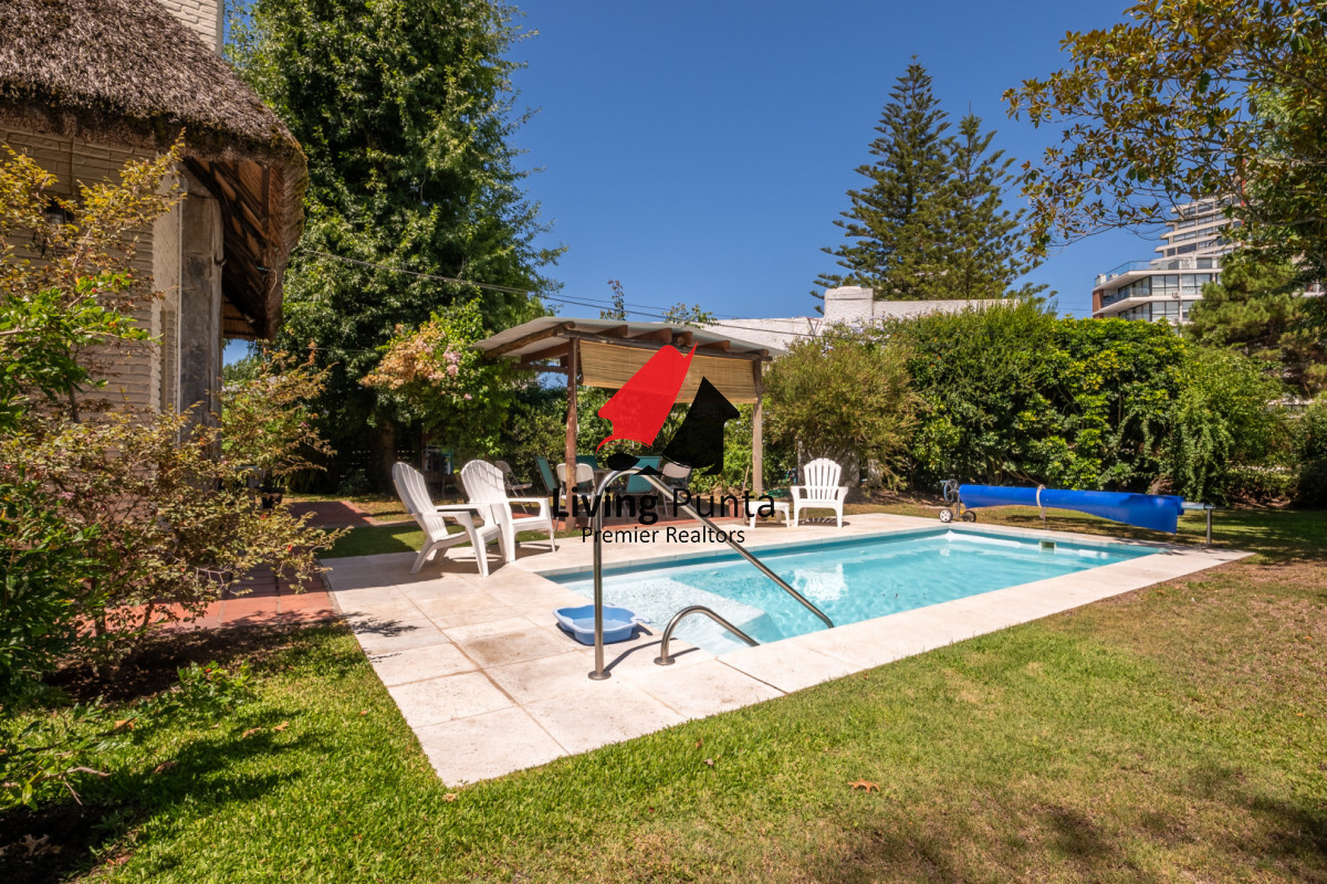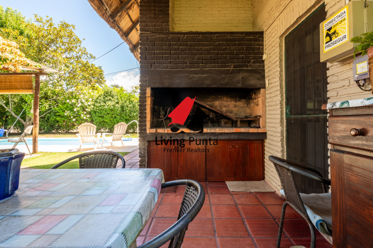 Parrillero techado, jardin cercado, garage y piscina exterior climatizada.
