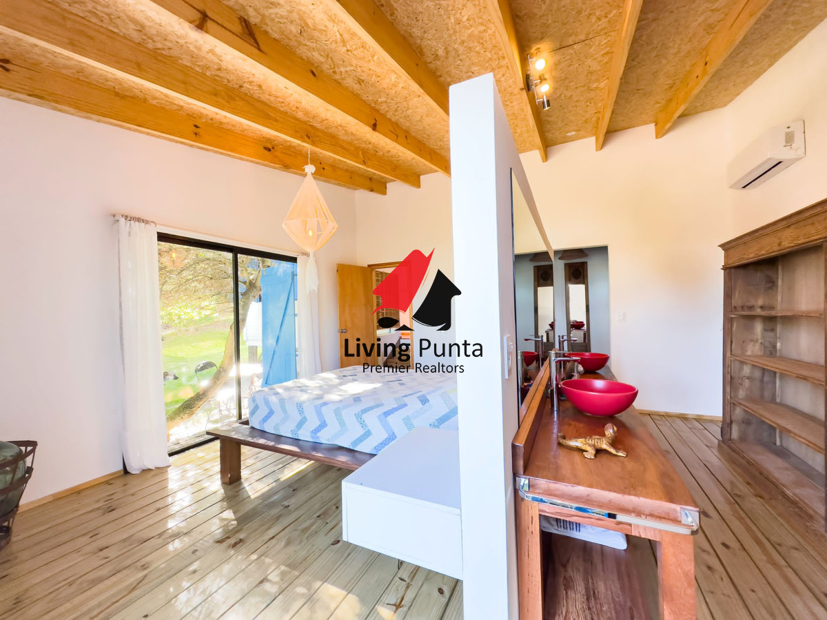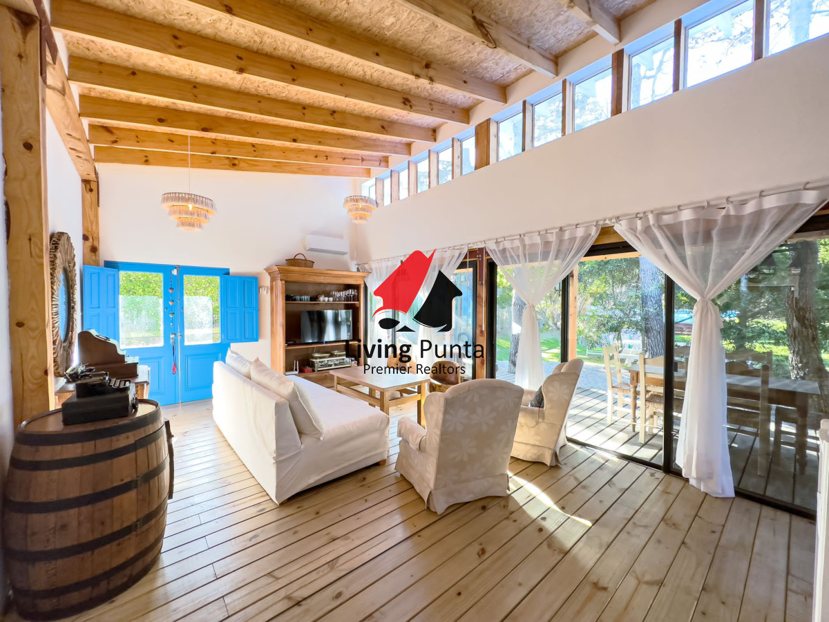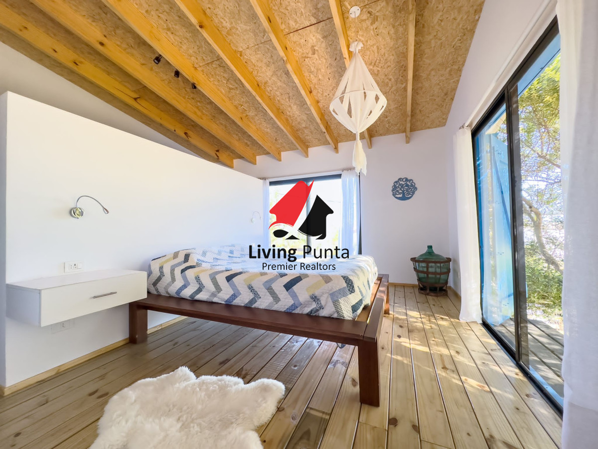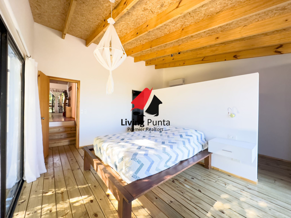 Amplio living comedor con cocina integrada , 3 dormitorios (3 camas de dos plazas + 1 de una plaza), 2 baños completos (principal en suite), amplio deck con parrillero, jardin cercado de 850 metros cuadrados, piscina.